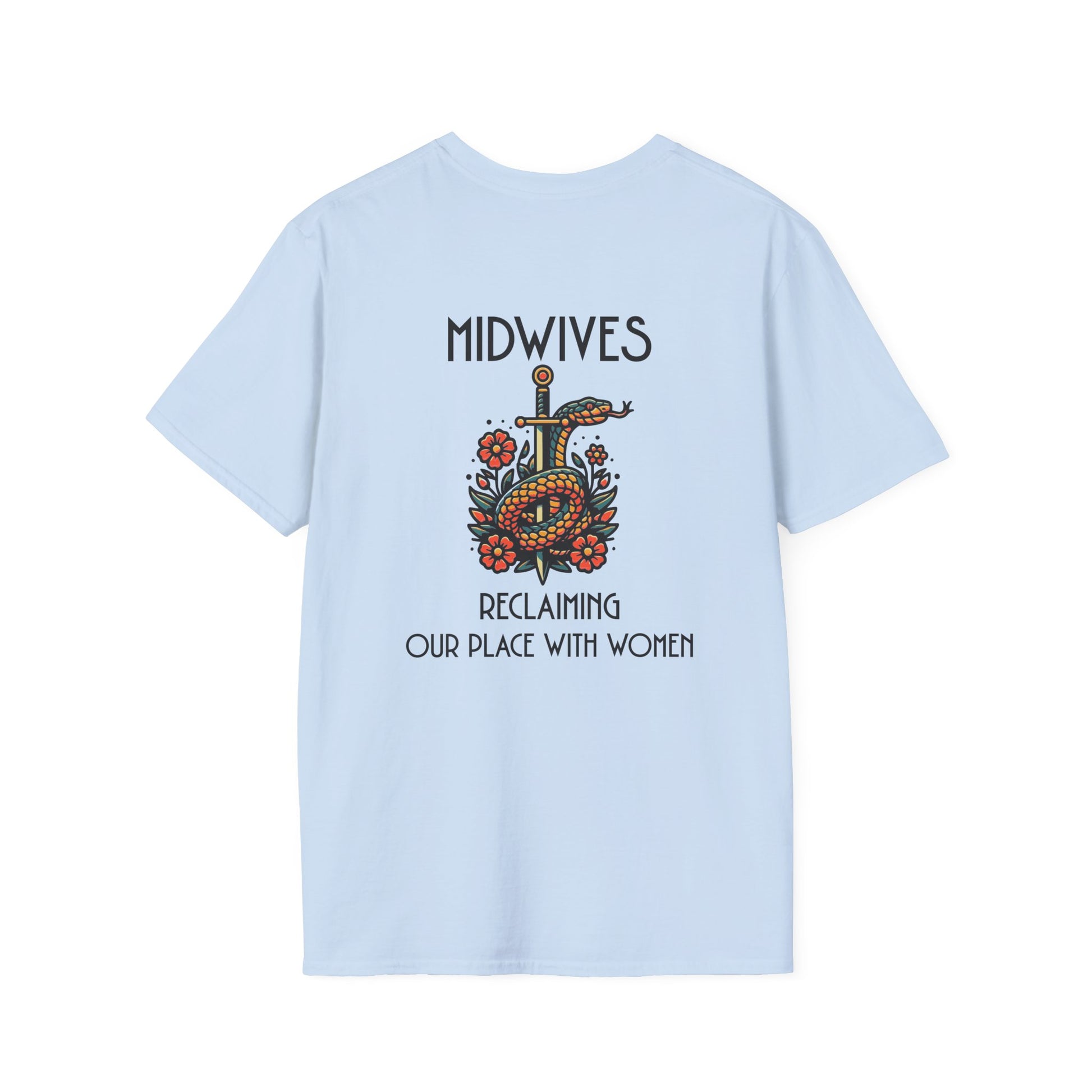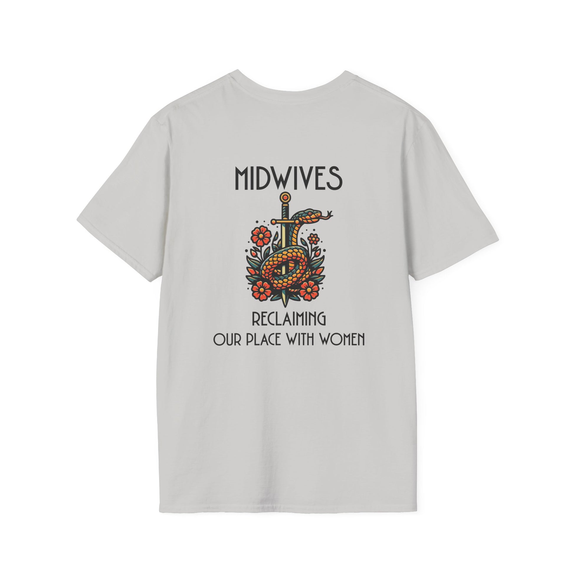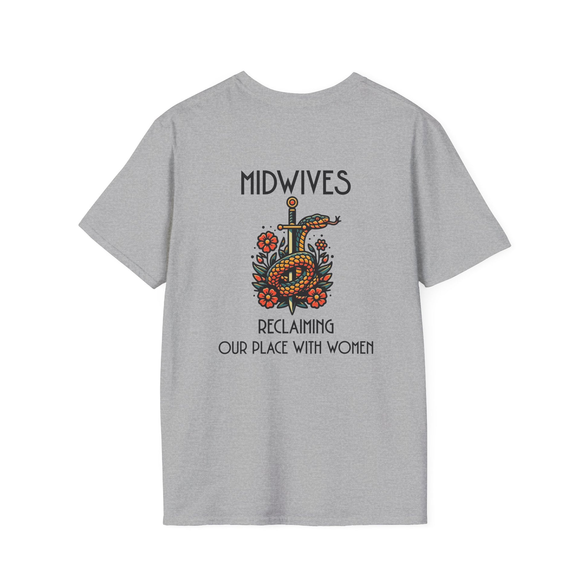 This midwife t-shirt features a healing snake and dagger and is designed for midwives to reclaim their place with women. This soft and durable t-shirt is perfect for everyday wear and showcases a unique and powerful design. Ideal for midwives who are passionate about our ancient origins and makes the best midwife gift.