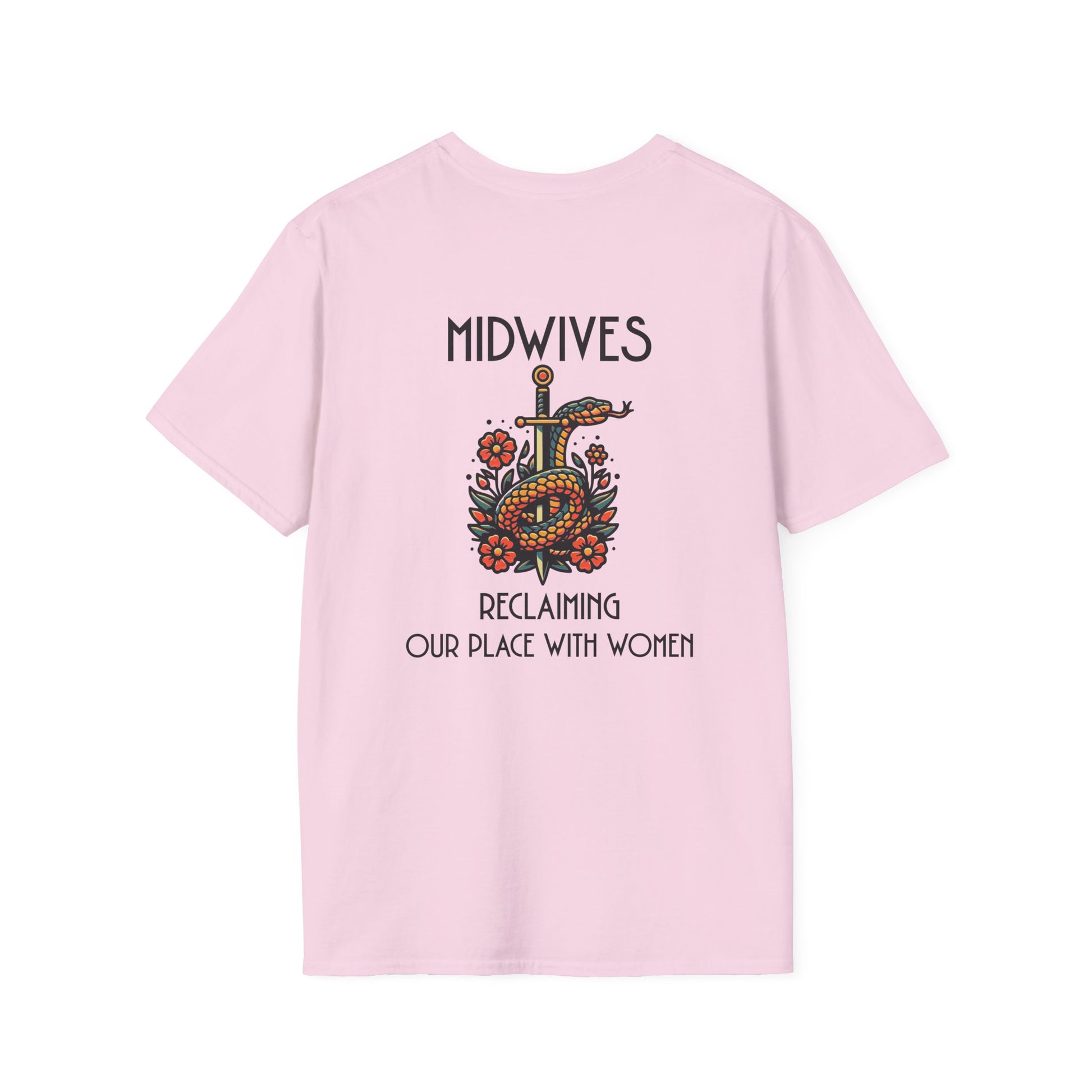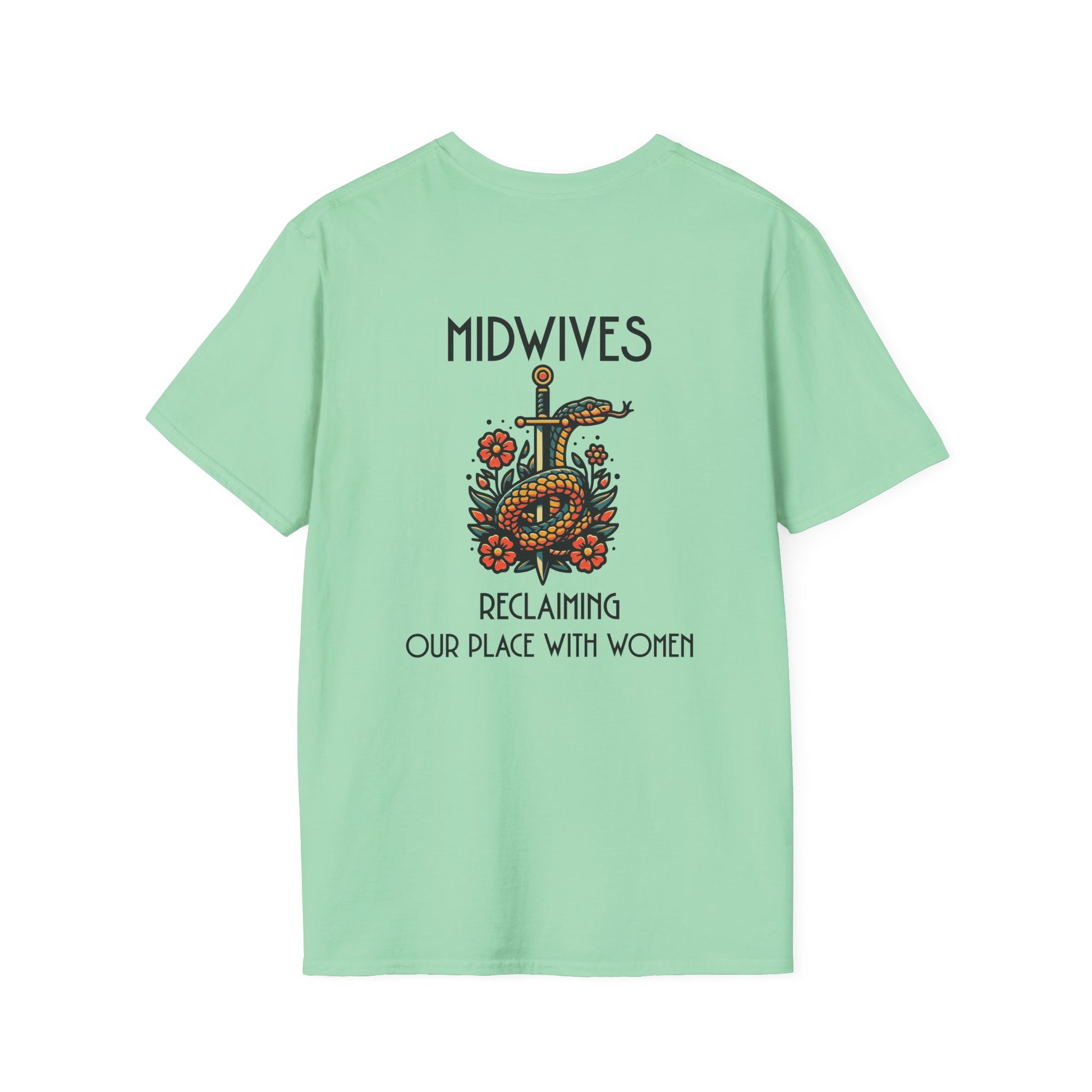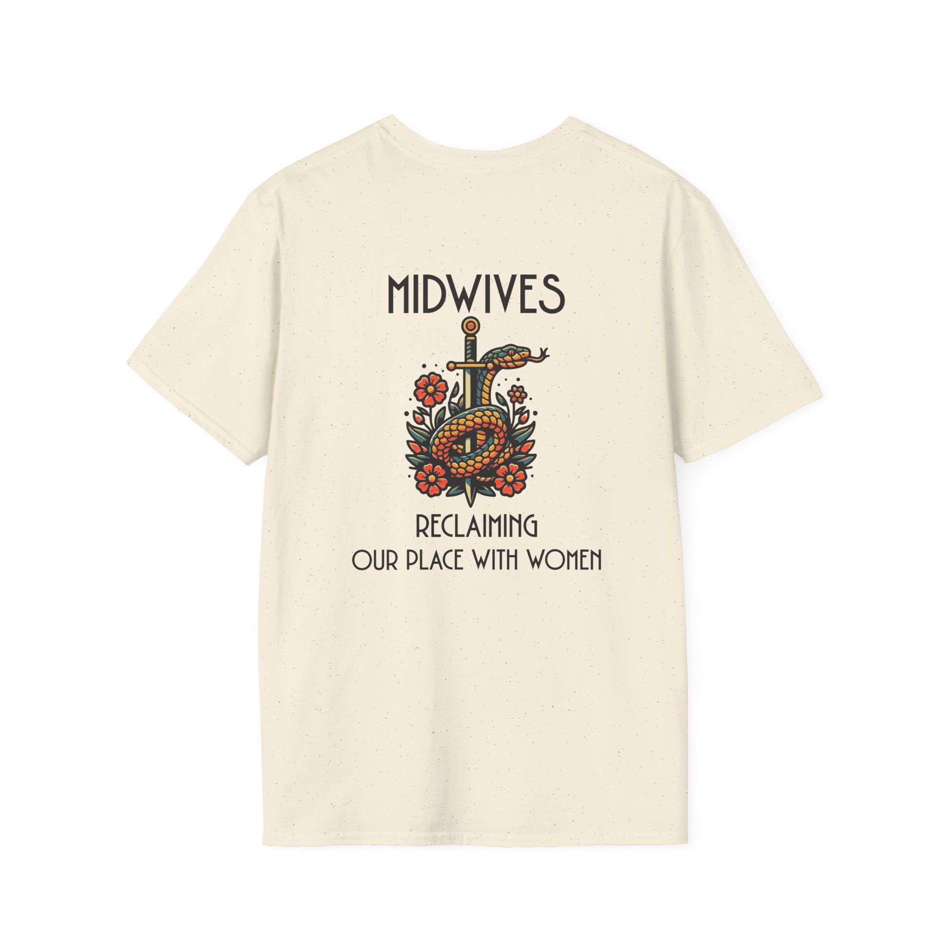 This midwife t-shirt features a healing snake and dagger and is designed for midwives to reclaim their place with women. This soft and durable t-shirt is perfect for everyday wear and showcases a unique and powerful design. Ideal for midwives who are passionate about our ancient origins and makes the best midwife gift.